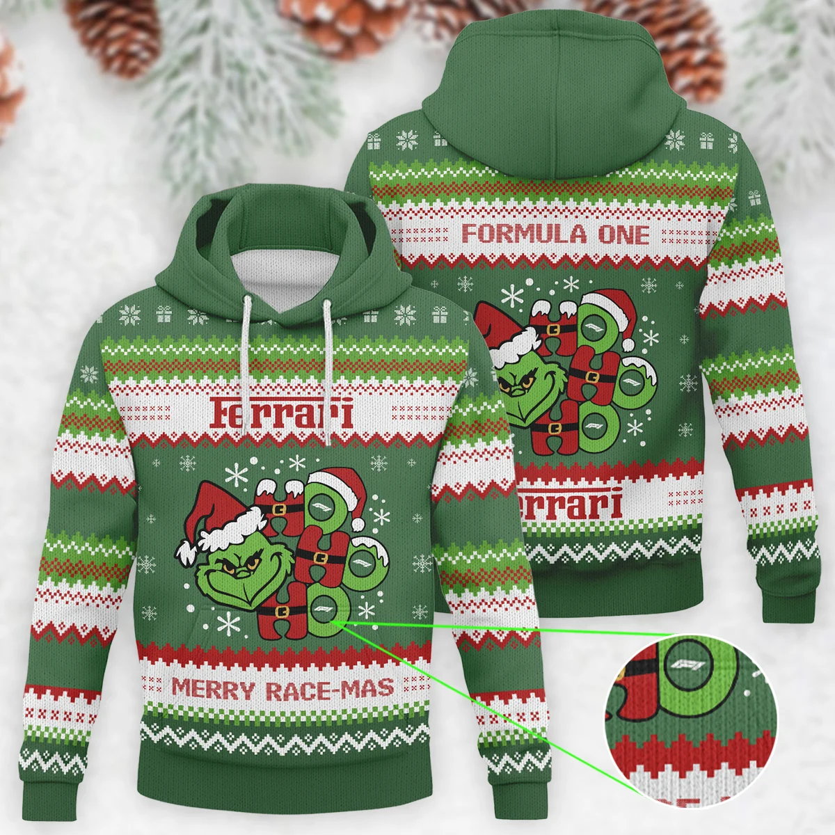 Be the first to review “Hohoho The Grinch Ferrari Formula One – Knitted Hoodie BLVAF12209250A15FRR”